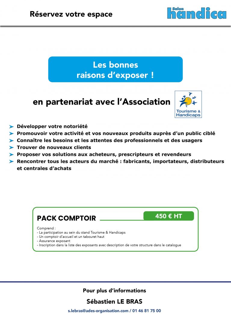 Offre salon – Pole Tourisme accessible sous la responsabilité de l’Association Tourisme & Handicaps