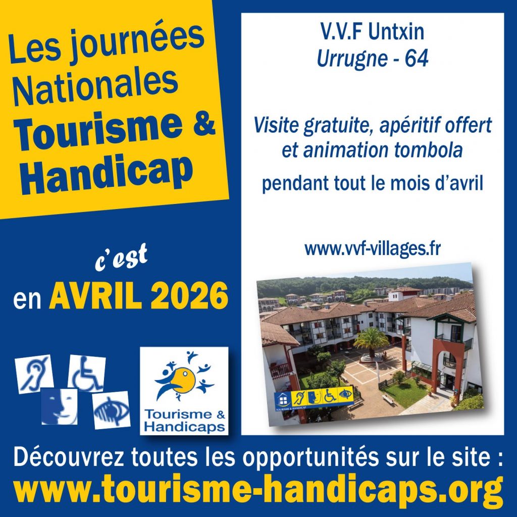 l s’agit d’un village de vacances avec restauration comprenant 60 chambres dont 3 sont adaptées pour tous les handicaps. Le village de vacances est positionné dans un quartier résidentiel du village d ’Urrugne, proche de la corniche d’Hendaye, des commerces et des plages de Socoa. il est situé à quelques kilomètres de la station touristique et historique de Saint Jean de Luz. Trois places de parking avec signalétique au sol et verticale sont déterminées pour desservir les trois chambres adaptées. Ces trois places sont positionnées sur un parking public. Le comptoir d’accueil est évidé à 70 cm du sol. Les salles d’eau sont aménagées à l’Italienne avec un WC adapté et barre de transfert. La douche est équipée avec un siège rabattable ainsi qu’une barre horizontale de transfert et une barre de maintien verticale. Les salles d’eau possèdent un lavabo avec mitigeur et miroir à bonne hauteur. L’aire de rotation est possible sur toute la chaîne de déplacement du village. La cuisine montre un espace évidé permettant l’accès à l’évier ainsi qu’au plan de cuisson. L’’accueil dispose d’une boucle magnétique de bureau, Les télévision dans les trois chambres possèdent une lecture télétexte, le wifi est installé sur tout le site. La règlementation relative au village ainsi que le mode d’emploi des appareils électro-ménagers est bien visible et détaillée. La signalétique directionnelle et d’information est bien positionnée. Le WC mixte du rez de chaussée, les trois chambres, les trois salles d’eau et cuisines sont équipés de flashs d’alerte lumineux reliés à la centrale d’alarme incendie. Il n’y a aucune dangerosité à hauteur de visage dans la chaîne de déplacement du village de vacances. Cette chaîne est contrastée en couleur avec les cheminements, le mobilier, les prises électriques, les interrupteurs. La signalétique directionnelle et d’information est en caractères agrandis. Toutes les baies vitrées sont munies de bandes d’alerte visuelle. Aucune dangerosité sur le village de vacances qui offre de nombreuses activités encadrées par des animateurs certifiés.