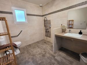 Equipements spécifiques : lit électrique, chaise de douche, potence, piscine avec rampe d’accès et tiralo, …